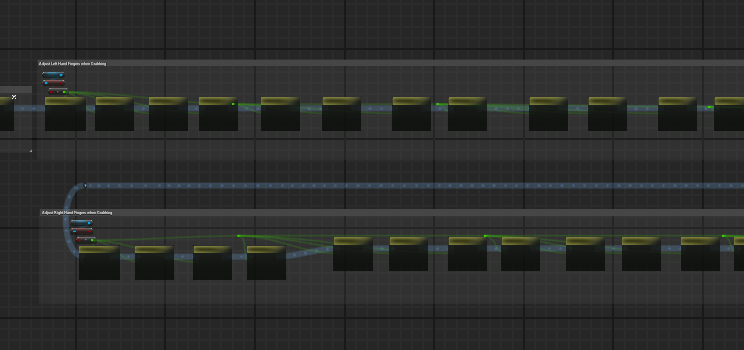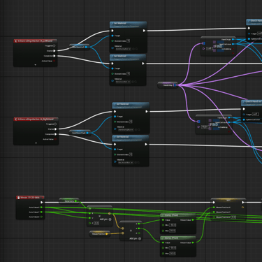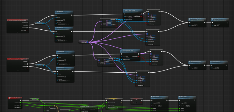This is my current project and was definitely out of my comfort zone initially. I had only done basic things with blueprints on Unreal Engine like making a door open and things like that. I struggled a lot with figuring out the correct techniques to use to achieve my goal which is creating a reusable climbing system similar to "A Difficult Game About Climbing" in Unreal Engine 5 using blueprints. At first I thought using animation blend spaces was the best way to do it, but I quickly learned that that was not going to work and instead I needed to use the Two Bone IK node. I had tons of help from my friend and peer Joey so shoutout to him!